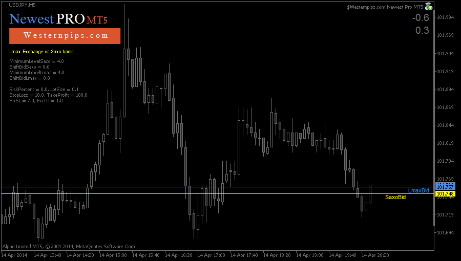 12. Если вы всё сделали правильно, то вы увидите голубую линию LmaxBid и желтую линия SaxoBid