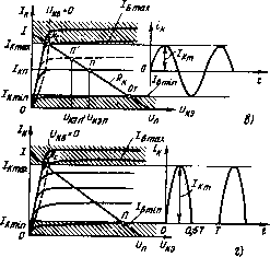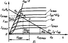 Рис. 2.3.2. Входная (а) и выходные (б, в, г) характеристики усилительного каскада.
