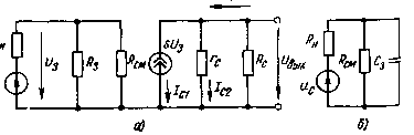 Рис. 2.3.11. Схема замещения каскада по постоянному (а) и переменному (б) току.