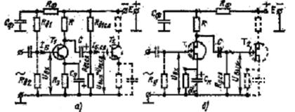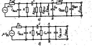 Рис. 2.4.2. Эквивалентные схемы резисторных каскадов предварительного усиления, изображенных на рис. 2.5.1: а - с биполярным транзистором; б - с полевым транзистором
