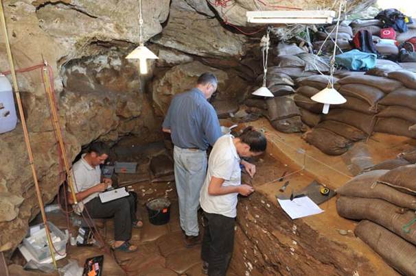 Рис. 107. Исследование пещеры Бломбос