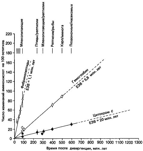 Рис. 155. У каждого своя скорость хода «молекулярных часов»