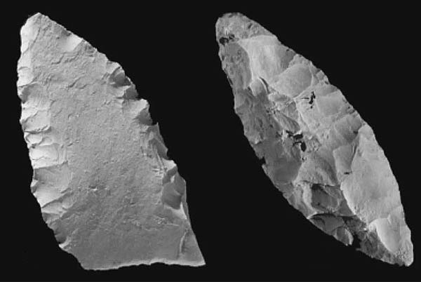 В 2010 году во время очередной поездки в Мексику мы познакомились с местными археологами, которые продемонстрировали нам свои находки – весьма странные фрагменты черепов и довольно примитивные каменные орудия, найденные рядом с фрагментами черепов (см. Рис. 165). Наиболее крупный фрагмент черепа имел то, что обычно называется «архаичными чертами» – довольно массивный надбровный валик и резко уходящий назад низкий лоб (или почти полное его отсутствие). Я совсем не силен в антропологии, чтобы делать какие-либо выводы о том, что эти фрагменты могли принадлежать существу, стоявшем ниже современного Гомо сапиенс на эволюционной лестнице. Но если это так, то данные находки в корне противоречат сложившейся картине заселения американских континентов. Учитывая, какие неприятные последствия могут иметь место для их научной и служебной карьеры подобные находки в случае подтверждения архаичности, археологи просили нас не разглашать их имен и не уточняли место обнаружения находок, ограничившись лишь констатацией, что это место находится «на территории Мексики». Будучи тоже не специалистами в области антропологии, они просили нас проконсультироваться у российских профессионалов. Поскольку, как говорится, за спрос денег не берут, и нам это ничем не грозило, мы пообещали помочь, чем сможем. С тех пор вот уже пять лет мы безуспешно пытаемся получить консультацию у профессиональных антропологов, хотя куда только «по знакомству» ни обращались. И поражает реакция: сначала заинтересованность и готовность помочь, а как только становится известно мексиканское происхождение находок – тут же специалист … пропадает со связи. И лишь один, которому просто некуда было деваться, сразу же после упоминания Мексики категорически стал утверждать, что это современный сапиенс, поскольку… иного быть не может. Не по каким-либо признакам у находок, а именно по той логике, согласно которой «этого не может быть, потому что не может быть никогда». Я нисколько не настаиваю, что находки принадлежат кому-то другому, нежели Гомо сапиенс. Однако подобная «аргументация» меня совершенно не устраивает…