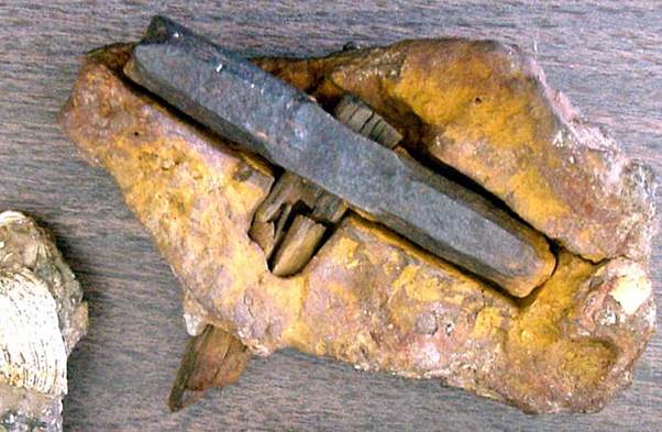 Рэйд привез находку в Нью-Йорк и показал ее геологу из Колумбийского университета д-ру Джеймсу Кемпу и профессорам Осборну, Мэттью и Хови из Американского музея естественной истории. Все они пришли к одному и тому же заключению, отметив, что «никогда не встречали столь великолепной натуральной имитации предмета искусственного происхождения». А профессор Мэттью составил даже краткое заключение по поводу находки, в котором указал, что, несмотря на присутствие всех отличительных признаков башмака, включая нитяные стежки, характерные для обуви, речь может идти лишь о превосходной имитации. Все названные эксперты сошлись, однако, во мнении относительно возраста камня, отнеся его к триасовому периоду. Но Рэйд на этом не успокоился. Позднее он писал: «Я обратился к специалистам по микрофотографии и химическому анализу из Фонда Рокфеллера, которые в частном порядке сделали фотоснимки находки и подвергли ее анализам, результаты которых подтвердили отсутствие каких-либо сомнений в том, что речь идет о подошве обуви, подвергшейся окаменению во время триасового периода... Микрофотографии, сделанные с двадцатикратным увеличением, отчетливо показывают мельчайшие детали перекрученных нитей стежков, их деформации и перекосы, тем самым убедительно подтверждая, что это именно ручная работа человека, а не ее природная имитация. Все особенности нитей можно без труда рассмотреть даже невооруженным глазом, да и сами контуры подошвы определенно симметричны. Внутри них, строго параллельно, проходит линия, состоящая из мелких отверстий, проделанных, очевидно, для пропускания стежков. К этому могу добавить, что по меньшей мере двое видных геологов, чьи имена еще не пришло время предать гласности, определили находку именно как подошву обуви, подвергшуюся природному процессу окаменения в триасовый период». В итоге мы имеем ныне целый ряд «странностей», которые заставляют сильно сомневаться в достоверности имеющейся информации. Во-первых, полное отсутствие упомянутых микрофотографий, которые якобы «убедительно подтверждают» ручную работу человека при изготовлении «башмака». Все, что доступно оптимистам и скептикам, – весьма посредственное качество единственного снимка «отпечатка башмака». Во-вторых, находку признали в качестве подлинного отпечатка башмака лишь «два видных геолога, чьи имена еще не пришло время предать гласности» не только в 1922 году, когда была сделана находка, но почему-то и до сих пор. Сейчас-то чего стесняться их назвать?.. В-третьих, триасовый период начался примерно 250 и закончился 200 миллионов лет назад (по принятой геохронологической шкале), а вовсе не пять миллионов, как указывалось в самом первом сообщении о находке. Довольно странная ошибка сразу аж на два порядка для Джона Рэйда, которого называют «видным геологом». И наконец – речь идет о камне вне всякого контекста. Камне, который просто валялся на поверхности. И у меня, например, вызывает сильное сомнение сама возможность датировки такого отдельного камня. По совокупности в итоге – считать подобную находку достоверным артефактом заявляемого возраста не приходится… В июне 1934 года в скалах нижнемелового периода (возрастом более 100 миллионов лет) неподалеку от американского городка Лондон в штате Техас на глаза миссис Эмме Хан попался молоток, буквально врос