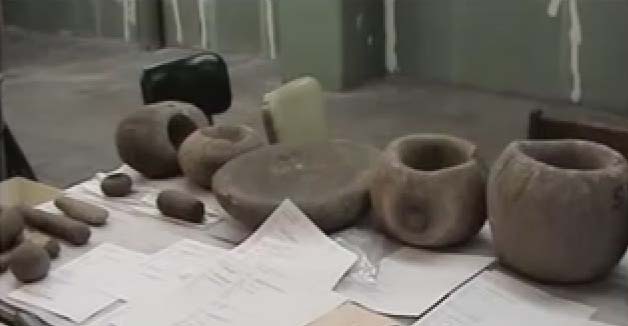 Рис. 232. Каменные ступы и пестики из шахт в Столовой горе
