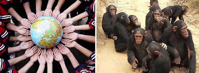 Рис. 276. Человечество ближе друг к другу, чем шимпанзе в одном стаде