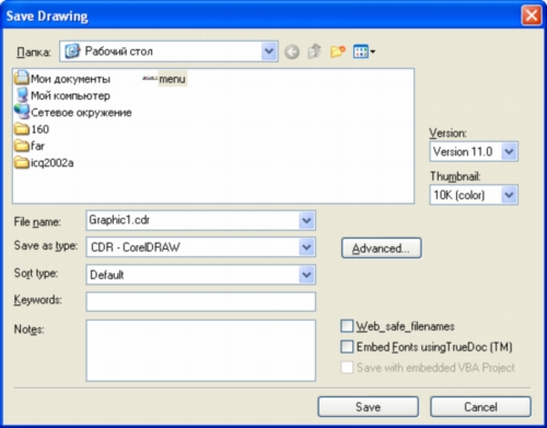 Рис. 1.1. Диалоговое окно Open Drawing (Открыть документ) Закрытие документа: File > Close (Файл > Закрыть). Сохранение документа CorelDRAW: File > Save (Файл > Сохранить) или щелчком на кнопке Save (Сохранить). Если ранее документ не сохранялся, раскроется окно Save Drawing (Сохранить документ).
