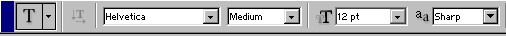 Рис. 7.29. Панель опций для инструмента Туре Всплывающие подсказки Наведите курсор на пиктограмму инструмента, не щелкая и не нажимая кнопки мыши, и вы узнаете название инструмента, а также «горячие» клавиши для его активизации (см. рис. 7.1). Аналогично можно получить сведения о функции палитры или о значениях опций, доступ к которым обеспечивает панель опций инструмента (см. рис. 7.2). Для того, чтобы включить режим подсказок, установите флажок Show Tool Tips (Показывать всплывающие подсказки) в окне Edit > Preferences > General (Правка > Установки > Общие).