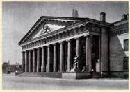 Казанский собор. 1801—1811 гг. Санкт-Петербург. ГОРНЫЙ ИНСТИТУТ В 1806 г. А. Н. Воронихин получил заказ на перестройку зданий Горного кадетского корпуса (с 1833 г. — Горный институт), размешавшихся на юго-западной оконечности Васильевского острова. Шесть старых двухэтажных построек, которые он занимал, располагались параллельно набережной Невы, прихотливо изгибаясь и образуя ломаную линию разнохарактерных фасадов. А между тем место было чрезвычайно ответственное: именно юго-западная окраина Васильевского острова прежде всего открывалась кораблям, входившим в устье Невы; здесь путешественники получали первое впечатление о столице России. Сохранив существующие строения, Воронихин объединил их общим фасадом — строгим, лишённым декоративных деталей: гладь стены прорезают прямоугольники окон. Вход оформлен грандиозным двенадцатиколонным портиком. К нему ведут широкие ступени лестницы, сложенной из каменных плит. Здание украшает серия скульптурных работ на античные сюжеты, говорящих о назначении этого учреждения. Их выполнили скульпторы Василий Иванович Демут-Малиновский (1779—1846) и Степан Степанович Пименов (1784—1833). Справа и слева от портика расположены рельефы, на которых представлены Венера и Аполлон, посещающие кузницу Вулкана — бога огня, покровителя кузнечного дела. На лестнице перед портиком помешены две скульптурные группы, изображающие силы Земли: владыка подземного мира Плутон похищает Прозерпину, дочь богини плодородия Цереры; могучий Геркулес (Геракл) побеждает Антея, сына богини Земли Геи.
