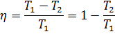 С. Карно выразил коэффициент полезного действия цикла через температуры нагревателя T 1 и холодильника T 2: