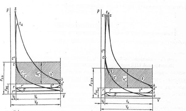Рис. 3.1 Индикаторные диаграммы четырехтактных двигателей: а - карбюраторного; б - дизельного