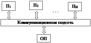 Вычислительные системы с общей памятью предусматривают все операции обмена информацией с общей памятью, т.е. в этом отношении похожи на рассмотренный выше персональный компьютер. Их производительность ограничена невозможностью выполнения параллельного обмена данными нескольких процессоров с памятью. С другой стороны имеется некоторая компенсация этого недостатка в виде упрощения процедур обмена информацией между процессорами вследствие наличия общего запоминающего устройства. В зависимости от построения коммуникационной подсети можно построить несколько вариантов многопроцессорных систем по схемам: · ОКОД (один поток команд – один поток данных); · МКОД (один поток команд – много потоков данных); · ОКМД (один поток команд – много потоков данных); · МКМД (много потоков команд – много потоков данных). Системы с несколькими потоками данных могут быть реализованы только как системы с распределённой памятью. В системах с одним потоком команд процессоры образуют последовательную технологическую цепочку, в которой информация из памяти читается головным процессором цепочки, передаётся от одного процессора к другому по каналу прямой связи и записывается в память конечным процессором технологической цепочки. Каждый процессор в таких системах специализируется на своей операции, поэтому очень прост и имеет высокое быстродействие. Системы с одним потоком данных называются конвейерными. В системах с одним потоком команд вовсе процессоры поступают одни и те же команды. Может существовать два варианта построения таких систем: · все процессоры выполняют одни и те же команды, но работают с разными наборами данных; · все процессоры выбирают из потока команд только предназначенные им команды.