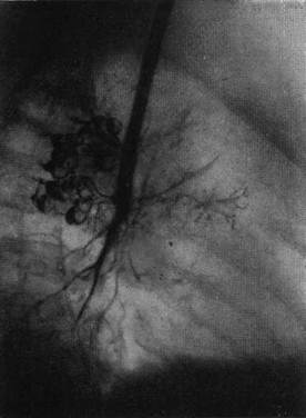 Ответы: Бронхография. 1) Основные рентгенологические изменения при бронхоэктатической болезни – единичные или множественные расширения бронхов различной формы (цилиндрические, мешотчатые, веретенообразные и смешанные). На иллюстрации представлены мешотчатые бронхоэктазы в виде округлых или овальных полостей, располагающиеся по ходу соответствующих бронхов. 2) У пациента на иллюстрации пальцы имеют вид барабанных палочек, а ногти – часовых стекол. Это связано с хронической интоксикацией и гипоксемией.