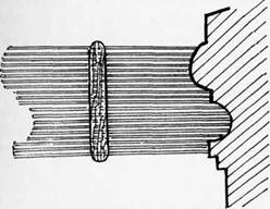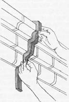 Если такие рельефные детали зданий как карнизы или пояски имеют перпендикулярные их направлению сквозные щели (например, швы с выветрившимся раствором), то можно, вложив в подобную щель лист бумаги, обвести на ней контур профиля детали. Такой способ изображения профилей и проще, и точнее их обмеров, поэтому всюду, где только можно, следует использовать именно его. (Рис. 61)