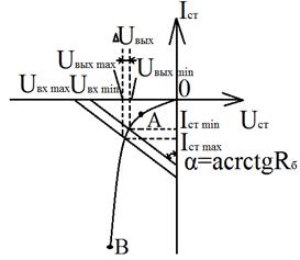 Обычно при расчете задается выходное напряжение Uвых, сопротивление Rн и диапазон изменения входного напряжения Uвх min и Uвх max. Отложим на оси напряжений значения минимального и максимального напряжений и через эти точки проведем прямые, угол наклона которых определяется сопротивлением балластного резистора Rб. Точки пересечения характеристики стабилитрона с проведенными прямыми дадут значения соответствующих выходных напряжений устройства. Допустим, что Rн>>Rб и тогда Iб Относительный коэффициент стабилизации (Kотн = Тогда