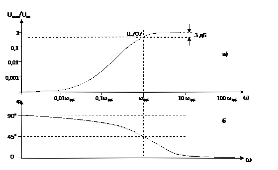 Инженеры пользуются понятием “точка излома” амплитудно-частотной характеристики, где амплитуда выходного к входному сигналу отличаются на 0,707 (-3 децибелла). Это частота ω3дб для фильтра ВЧ равна