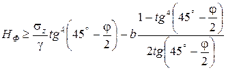 где, sz – удельное давление на грунт т/м2, получающиеся под основанием при выбранных размерах фундамента; g – объемный вес грунта, т/м3; j – угол естественного откоса в градуса; b – ширина фундамента, м.