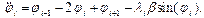 ”непрерывный аналог” системы (2). Это уравнение имеет солитонные решения, в частности, односолитонное решение, или кинк, характеризующий динамику распространения дислокации в цепи. В соответствии с (1) система нелинейных уравнений движения записывается следующим образом: