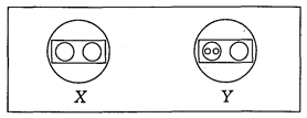 Рис. 22. Первоначальная ситуация Прямоугольник обозначает "плацдарм", т. е. конкретную ситуацию. Кружочки внутри плацдарма обозначают сознание двух конкретных индивидов: Х и Y.* * Это, например, могут быть. "переговорщик" и террорист, следователь и обвиняемый.