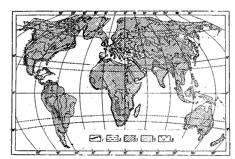 История развития древних платформ В течение палеогена и неогена древние платформы находились в континентальных условиях, лишь их окраинные части покрывались водами мелководных морей. Наибольшая трансгрессия наблюдалась в эоцене (рис. 31), а в олигоцене началась регрессия, приведшая к