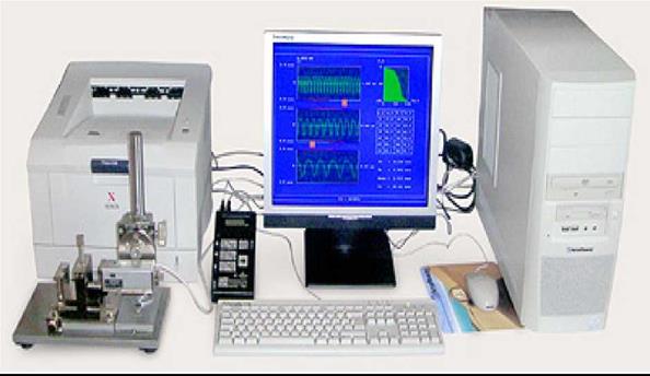 Профилограф-профилометр «Абрис-ПМ7» Профилограф-профилометр «Абрис-ПМ7» предназначен для измерений в лабораторных и цеховых условиях машиностроительных, приборостроительных и других предприятий, а также в полевых условиях, шероховатости поверхностей изделий, сечение которых в плоскости измерения представляет прямую линию. Измерение параметров шероховатости поверхности производится по системе средней линии в соответствии с номенклатурой и диапазонами значений, предусмотренными ГОСТ 2789-73. Устройство и работа Действие прибора основано на ощупывании неровностей измеряемой поверхности алмазной иглой и преобразовании колебаний щупа датчика в колебания электрического напряжения, пропорциональные этим колебаниям. Колебания напряжения обрабатываются в отсчетном устройстве и персональном компьютере и результат обработки выводится в цифровом виде на индикатор отсчетного устройства и в цифровом и графическом виде на экран монитора персонального компьютера. Основу прибора составляют первичный преобразователь и отсчетное устройство, которые обеспечивают необходимую точность измерения параметров шероховатости. Первичный преобразователь предназначен для перемещения с постоянной скоростью относительно измеряемой поверхности измерительного механизма и преобразования линейных колебаний иглы, воспроизводящей неровности измеряемой поверхности, в колебания электрического напряжения. Первичный преобразователь подключается к отсчетному устройству кабелем через разъем или напрямую. Отсчетное устройство предназначено для усиления и преобразования сигнала с первичного преобразователя, управления электроприводом, вычисления параметров шероховатости измеряемой поверхности с выдачей результатов измерения на устройство цифровой индикации. Конструктивно отсчетное устройство выполнено в малогабаритном корпусе из ударопрочного полистирола. Переключатели пределов и видов измерений, а также пусковая кнопка, расположены таким образом, что можно удобно работать с отсчетным устройством, держа его при необходимости одной рукой. В верхней части отсчетного устройства расположены гнезда для подключения сетевого адаптера питания и для подключения прибора к персональному компьютеру. Стойка приборная предназначена для установки на нее первичного преобразователя, придания ему пространственного положения при измерении, создания измерительного усилия, а также для установки и закрепления измеряемых деталей. Программно-аппаратный комплекс на базе IBM-совместимого персонального компьютера, входящего в состав профилографа- профилометра, обеспечивает прием сигналов, их обработку, расчет параметров шероховатости и вывод на экран монитора и печатающее устройство результатов расчета и профилограммы измеренного участка. Первичный преобразователь базируется на измеряемую поверхность либо непосредственно основанием, либо с помощью дополнительных приспособлений таким образом, чтобы рабочая поверхность опоры, вершина иглы и рабочая плоскость основания находились в одной плоскости. При этом индикатор на первичном преобразователе должен светиться тем ярче, чем ближе к сбалансированному положению находится измерительный механизм датчика. После этого дается команда на начало измерения нажатием пусковой кнопки. Алм