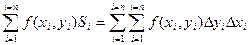В приведенной выше записи имеются два знака S, т.к. суммирование производится по двум переменным х и у. Т.к. деление области интегрирования произвольно, также произволен и выбор точек Рi, то, считая все площади Si одинаковыми, получаем формулу: