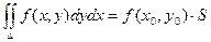 4) Теорема о среднем. Двойной интеграл от функции f(x, y) равен произведению значения этой функции в некоторой точке области интегрирования на площадь области интегрирования.