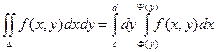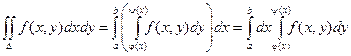 Теорема. Если функция f(x, y) непрерывна в замкнутой области D, ограниченной линиями х = a, x = b, (a < b), y = j(x), y = y(x), где j и y - непрерывные функции и j £ y, тогда