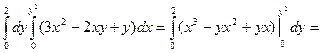 т.к. при первом интегрировании переменная х принимается за постоянную, то dx = 0.