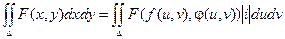 Замена переменных в двойном интеграле. Расмотрим двойной интеграл вида Положим х = f(u, v); y = j(u, v)