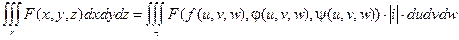 Операция замены переменных в тройном интеграле аналогична соответсвующей операции для двойного интеграла. Можно записать: