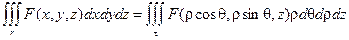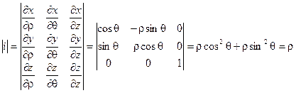 Для представления тройного интеграла в цилиндрических координатах вычисляем Якобиан: