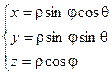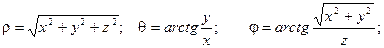 y Связь координат произвольной точки Р пространства в сферической системе с координатами в декартовой прямоугольной системе осуществляется по формулам: