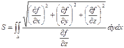 Если поверхность задана уравнением: f(x, y, z) = 0, то площадь ее поверхности находится по формуле: