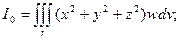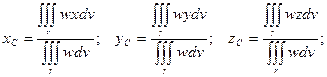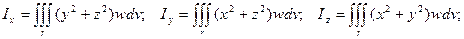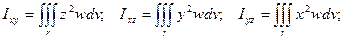 В приведенных выше формулах п.п. 8 – 11 r – область вычисления интеграла по объему, w – плотность тела в точке (х, у, z), dv – элемент объема - в декартовых координатах: dv = dxdydz; - в циллиндрических координатах: dv = rdzdjdq; - в сферических координатах: dv = r2sinjdrdjdq.