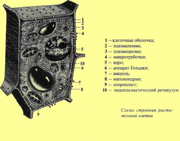 В растительной клетке следует различать клеточную оболочку и содержимое. Основные жизненные свойства присуши именно содержимому клетки — протопласту. Кроме того, для взрослой растительной клетки характерно наличие вакуоли — полости, заполненной клеточным соком. Протопласт состоит из ядра, цитоплазмы и включенных в нее крупных органелл, видимых в световой микроскоп: пластид, митохондрий. В свою очередь цитоплазма представляет собой сложную систему с многочисленными мембранными структурами, такими, как аппарат Гольджи, эндоплазматический ретикулум, лизосомы, и немембранными структурами—микротрубочки, рибосомы и др. Все указанные органеллы погружены в матрикс цитоплазмы — гиалоплазму, или основную плазму. Каждая из органелл имеет свою структуру и ультраструктуру. Под ультраструктурой понимается расположение в пространстве отдельных молекул, составляющих данную органеллу. Даже с помощью электронного микроскопа далеко не всегда можно увидеть ультраструктуру более мелких органелл (рибосом). По мере развития науки открываются все новые структурные образования, находящиеся в цитоплазме, и в этой связи наши современные представления о ней ни в коей мере не являются окончательными. Размеры клеток и отдельных органелл приблизительно следующие: клетка 10 мкм, ядро 5—30 мкм, хлоропласт 2—6 мкм, митохондрии 0,5—5 мкм, рибосомы 25 нм. В создании надмолекулярных структур отдельных органоидов клетки большое значение имеют так называемые слабые химические связи. Наиболее важную роль играют водородные, вандерваальсовы и ионные связи. Важнейшей особенностью является то, что энергия образования этих связей незначительна и лишь немного превышает кинетическую энергию теплового движения молекул. Именно поэтому слабые связи легко возникают и легко разрушаются. Средняя продолжительность жизни слабой связи составляет лишь долю секунды. Наряду со слабыми химическими связями большое значение имеют гидрофобные взаимодействия. Обусловлены они тем, что гидрофобные молекулы или части молекул, находящиеся в водной среде, располагаются так, чтобы не контактировать с водой. При этом молекулы воды, объединяясь друг с другом, как бы выталкивают неполярные группы, сближая их. Именно слабые связи определяют в большой степени конформацию (форму) таких макромолекул, как белки и нуклеиновые кислоты, лежат в основе взаимодействия молекул и, как следствие, в образовании и самосборке субклеточных структур, в том числе органелл клетки.