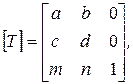 где действие элементов a, b, с и d верхней части (2 х 2)-матрицы точно соответствует действиям, рассмотренным ранее. Элементы m и n являются коэффициентами перемещения в направлениях х и у соответственно. Полная двумерная матрица преобразования имеет вид