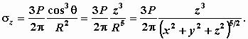 Из геометрических соотношений находим, что 37.Какой вид имеют эпюры напряжений σz в задаче о сосредоточенной силе?
