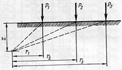 Рис.6.8. Схема действия нескольких сосредоточенных сил.