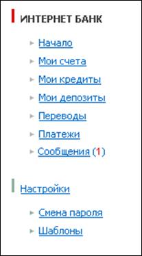 Данный функционал предназначен для получения информационных сообщений Клиентами Альфа-Банка, а также ответа на них. (Если отправленное сообщение поддерживает обратную связь). Сообщения могут быть следующего характера: · рекламная деятельность (оповещение пользователей об акциях, новых возможностях); · оповещение о работах над системой, каких-либо изменениях; · с получением обратной связи, если Банк имеет такую цель перед рассылкой (пользователь сможет сообщать о своем положительном отношении к акции и дает согласие на то, чтобы представители Банка связались с ним); Левое меню Интернет-Банка с новым сообщением: