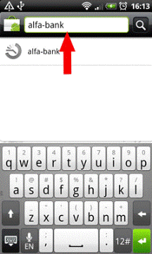 6. В зависимости от выбранного пункта появится одно из следующих окон, в которых можно выбрать мобильного оператора или Интернет-провайдера, а также номер счета для оплаты, с которого будет произведено списание, сумму платежа: Установка приложения Альфа-Банка на телефоны Android 1) Зайти в магазин Android Market (ярлык находится на рабочем столе или в разделе «Все приложения»):