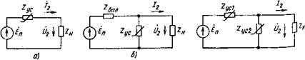 Рис. 2.1.2. Разновидности структурных схем усилительных устройств: последовательная (а), параллельная (б) и последовательно-параллельная (в)