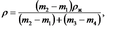 После удаления воздуха пикнометр заполняют жидкостью до отметки и помещают в термостат с температурой 20 ± 0,5 °С, в котором выдерживают в течение 15 минут. При отсутствии термостата используют водяную ванну с постоянной температурой 20 ± 0,5 °С. Уровень жидкости в пикнометре доводят до метки по нижнему мениску. После этого немедленно производят взвешивание пикнометра. Затем пикнометр освобождают от содержимого, промывают, заполняют водой (или инертной жидкостью), выдерживают в термостате так же, как с навеской, доводят жидкостью до постоянного уровня, как указано выше, и снова взвешивают. Плотность материала r в г/см3 вычисляют по формуле (8)