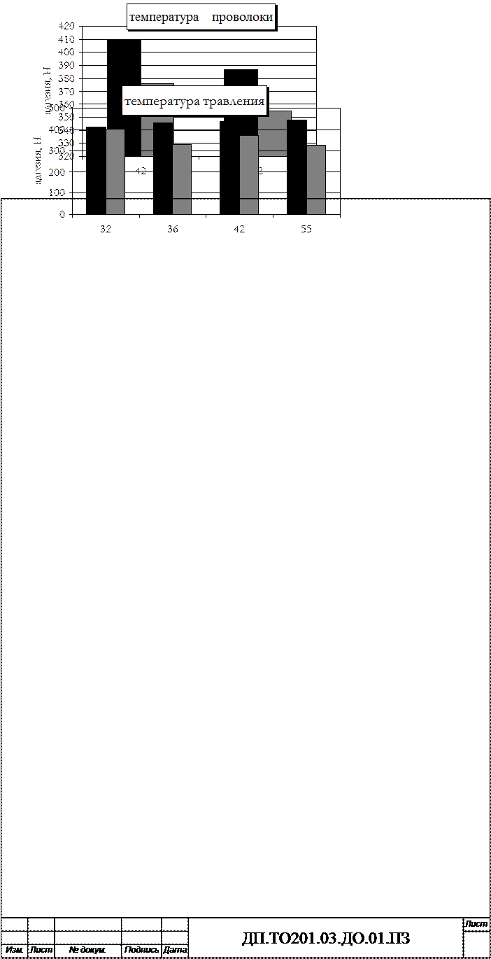 Рисунок 8 Исследование параметров фосфорного травления и их влияние на сохранение адгезии