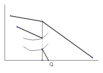 Олигополии могут быть однородными или дифференцированными, т.е., в олигополистической отрасли могут производить дифференцированные или стандартизированные продукты. (сталь, медь, автомобили, сигареты). Причины существования олигополии: а) экономия издержек, зависящая от размеров предприятия (эффект масштаба) б) барьеры для вступления и слияния. (владение патентами, контроль над стратегическим сырьём /электроника, химия/). Для олигополии характерна всеобщая взаимозависимость. Всеобщая взаимозависимость, вытекающая из немногочисленности, и как следствие, необходимость для фирмы взвешивать возможные ответные действия конкурентов в случае изменения её ценовой политики являются уникальными свойствами олигополии. 17. Цена и объём производства в условиях олигополии. Для понимания сущности олигополистического ценообразования следует рассмотреть четыре различные модели: 1) ломанную кривую спроса, 2) обусловленное тайным соглашением ценообразование, 3) лидерство в ценах, 4) ценообразование по принципу «издержки плюс».