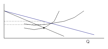 Максимизация прибыли монополий в долгосрочном периоде. Долгосрочное равновесие можно проиллюстрировать при помощи рисунка 14. В этом случае изменяется лишь интерпретация кривых. Кривая АТС будет интерпретироваться как кривая долгосрочных средних издержек фирмы. Кривая предельных издержек будет соответствовать кривой долгосрочных предельных издержек. Долгосрочное равновесие достигается при таком уровне выпуска, кода долгосрочные предельные издержки равны долгосрочному предельному доходу. Долгосрочная равновесная цена будет равна высоте кривой долгосрочного спроса в этой точке. При долгосрочном равновесии, во-первых: фирма должна функционировать безубыточно; во-вторых: долгосрочное равновесие не обязательно должно устанавливаться в точке минимума кривой долгосрочных совокупных издержек; в-третьих: цена, максимизирующая долгосрочную прибыль фирмы, будет ниже, чем цена, максимизирующая краткосрочную прибыль. (Это происходит в связи с тем, что спрос на любой продукт более эластичен в долгосрочном периоде, чем в краткосрочном).