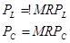 2) Мы знаем, что максимизация прибыли происходит тогда, когда предельный доход MR равен предельным издержкам МС. Применительно к нашей ситуации мы видим, что количество нанимаемого труда, обеспечивающее максимальную прибыль, должно быть таким, чтобы ставка заработной платы, или цена труда Р, была равна предельному продукту труда в ДЕНЕЖНОМ ВЫРАЖЕНИИ MRP, или проще: PL = MRPL; это верно и капиталу PC = MRPC. Вывод: при использовании ресурсов на конкурентных рынках фирма реализует МАКСИМИЗИРУЮЩЕЕ ПРИБЫЛЬ СОЧЕТАНИЕ РЕСУРСОВ, если каждый вводимый фактор производства, используется до точки, в которой его цена равна его предельному продукту в денежном выражении: