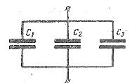 Параллельное соединение конденсаторов На рис. 1 изображено параллельное соединение нескольких конденсаторов. В этом случае напряжения, подводимые к отдельным конденсаторам, одинаковы: U1 = U2 = U3 = U. Заряды на обкладках отдельных конденсаторов: Q1 = C1U, Q2 = C2U, Q3 = C3U, а заряд, полученный от источника Q = Q1 + Q2 + Q3.