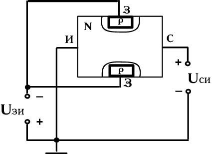 Рис. 1. Структурная схема полевого транзистора с управляющим p-n переходом.