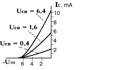 Рис. 4. Стоковая вольтамперная характеристика полевого транзистора с управляющим p-n переходом.
